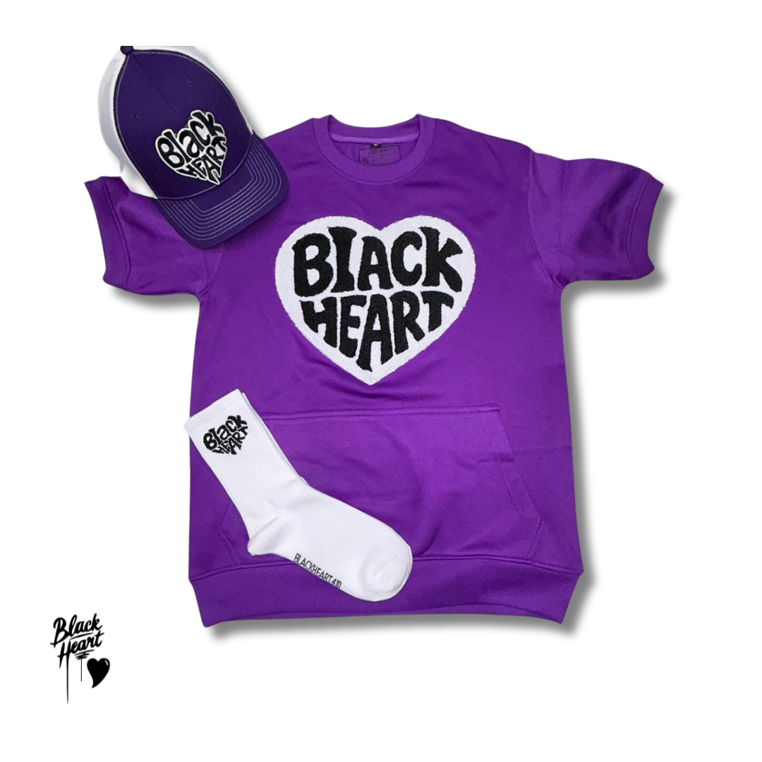 Show off your unique style with our new KISS Black Heart Word Heart Short-sleeve Sweatshirt, a one-of-a-kind sweatshirt NEVER RELEASED BEFORE. Featuring a centered Chenille logo and a blackheart410 design on the back, this short sweatshirt combines fashion with purpose, positivity, and empowerment.