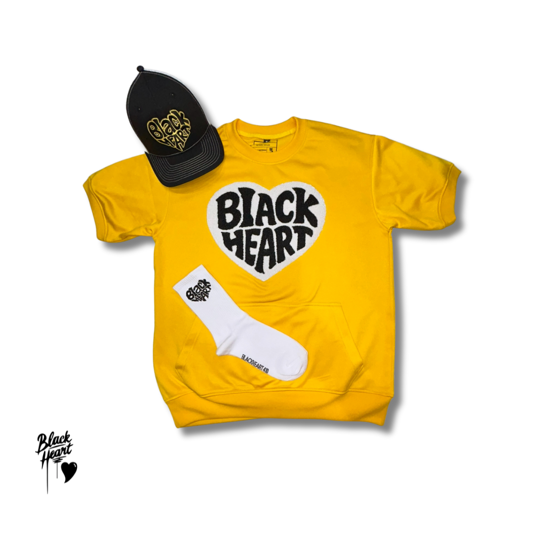 Show off your unique style with our new KISS Black Heart Word Heart Short-sleeve Sweatshirt, a one-of-a-kind sweatshirt NEVER RELEASED BEFORE. Featuring a centered Chenille logo and a blackheart410 design on the back, this short sweatshirt combines fashion with purpose, positivity, and empowerment.
